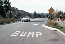 - May not be appropriate if the street is a bus route or emergency route. One device may be necessary and serve the primary need. Several raised devices may be disruptive, so other measures should be considered.