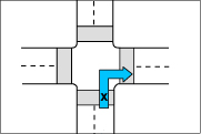 7b. Pedestrian within crosswalk area, approach direction opposite motorist’s. |