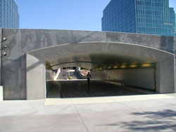 Safety was addressed in several ways. The underpass featured security lighting, a skylight, and a wide, unobstructed environment to provide an atmosphere for personal security. Other ideas discussed included security cameras and patrols by security personnel from nearby properties, or merchandise carts to provide a constant people presence. In addition, wrought iron fencing was installed in the median to the west of the underpass to discourage crossings at locations other than the adjacent signals or the underpass.