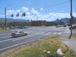 The intersection of State Highway 6 and the Edwards Spur Road in Edwards, Colorado, had a significant problem with safety as traffic volumes there reached around 25,000 vehicles per day along Highway 6. Pedestrians wishing to navigate the area had to walk along the roadway and cross the busy intersection. Compounding the problem was the fact that both roads were state highways, and any changes would require approval from Colorado DOT.
