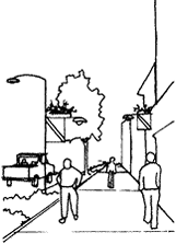 side-by-side. Wider sidewalks should be installed near schools, at transit